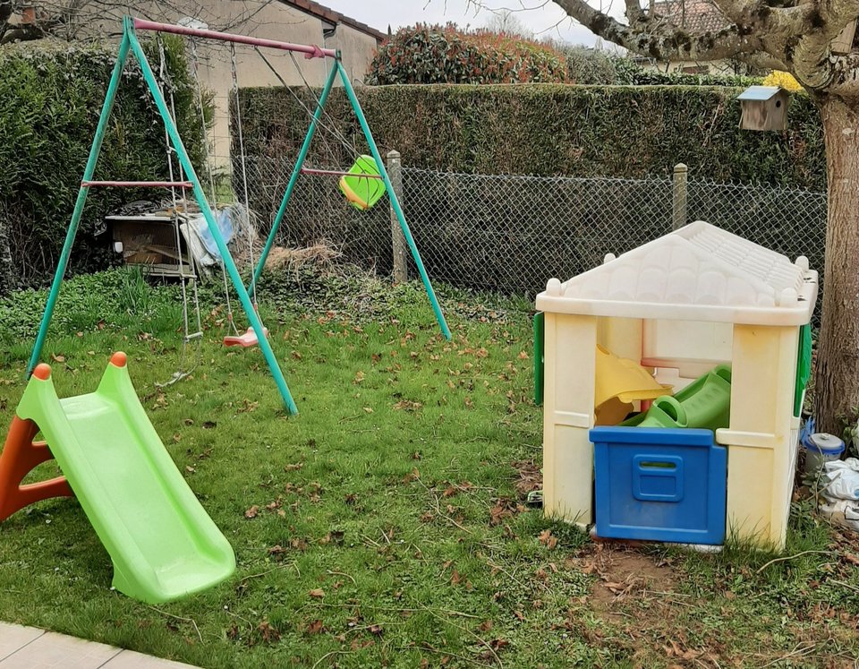 maison avec jardin cloturé, jeux extérieur pas loin d'un parc. J'ai une chambre exclusivement pour les enfants