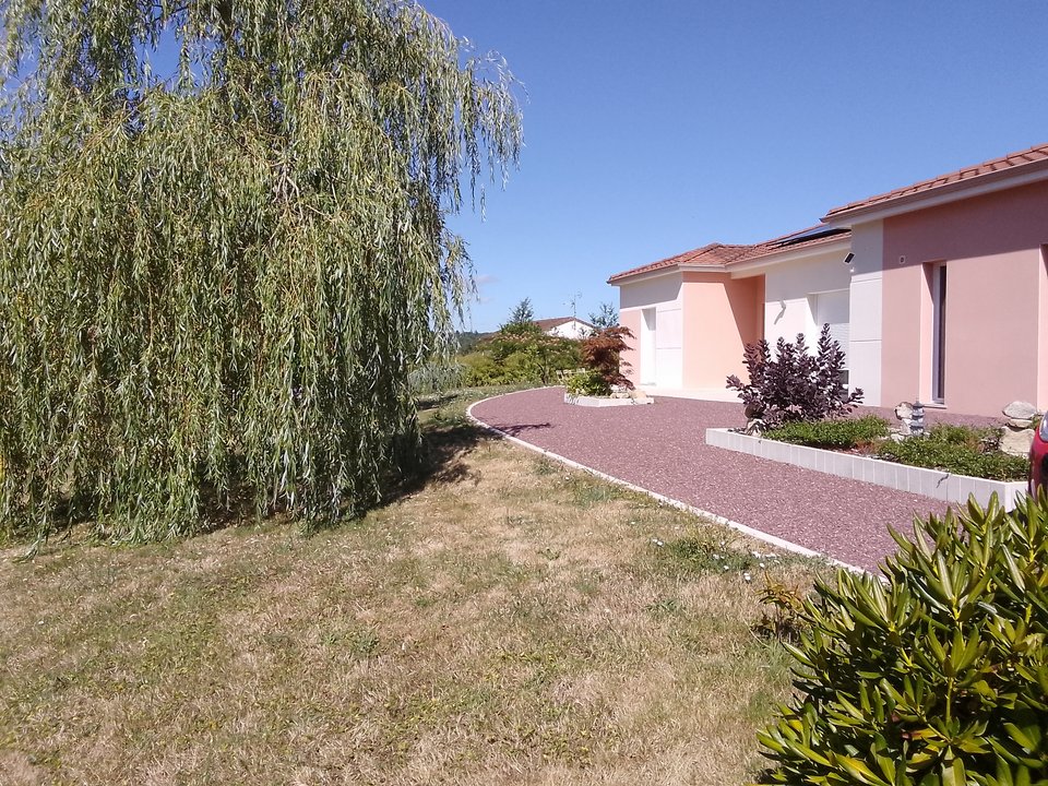 Maison plein pied ( lumière traversant), récente, située à la campagne, verdure, calme, chaleureuse, lumineuse et spacieuse, composée de 5 chambres dont une salle de jeux. 3 chambres disponibles pour les siestes. Un jardin spacieux et cloturé.