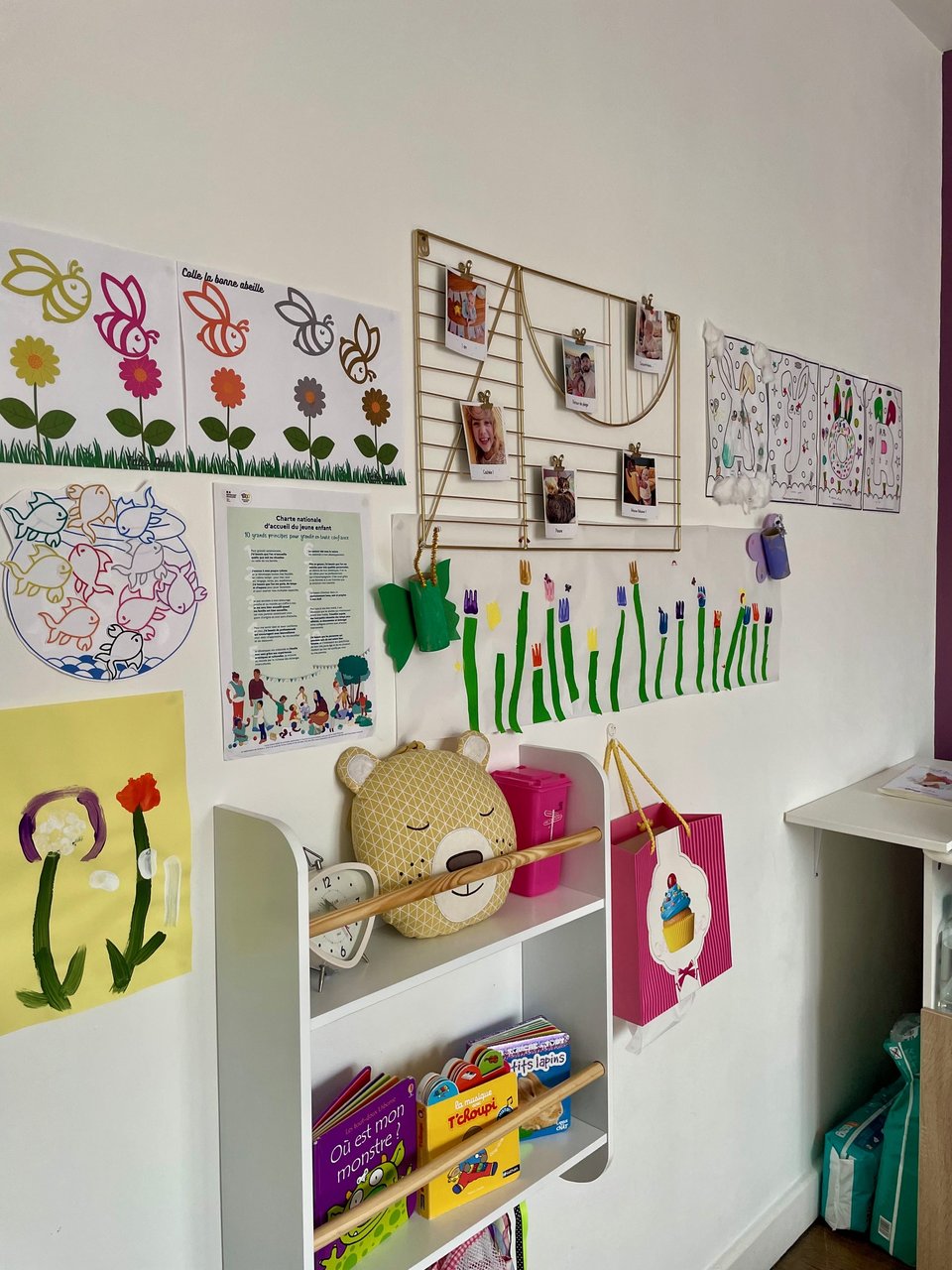 Avec moi, il y a de nombreuses activités créatives, de la motricité libre, des jeux symboliques, des comptines, du yoga, des lectures, de la peinture, des sorties à la bibliothèque, au RPE, etc. Quand le temps le permet, j'essaye de sortir de façon quotidienne.